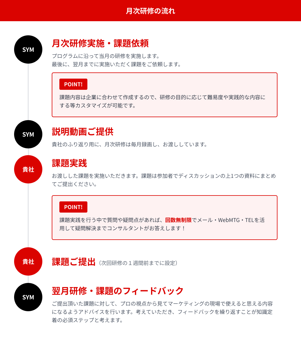 一方、今回の研修では、自社サービスの内容や課題を踏まえたうえでマーケティングの基礎から応用までをワークショップも交えて学ぶことができ、非常に勉強になりました。研修を通して、自社の現状を正確に把握し、具体的な改善策まで考えられるようになったのは大きな収穫です。